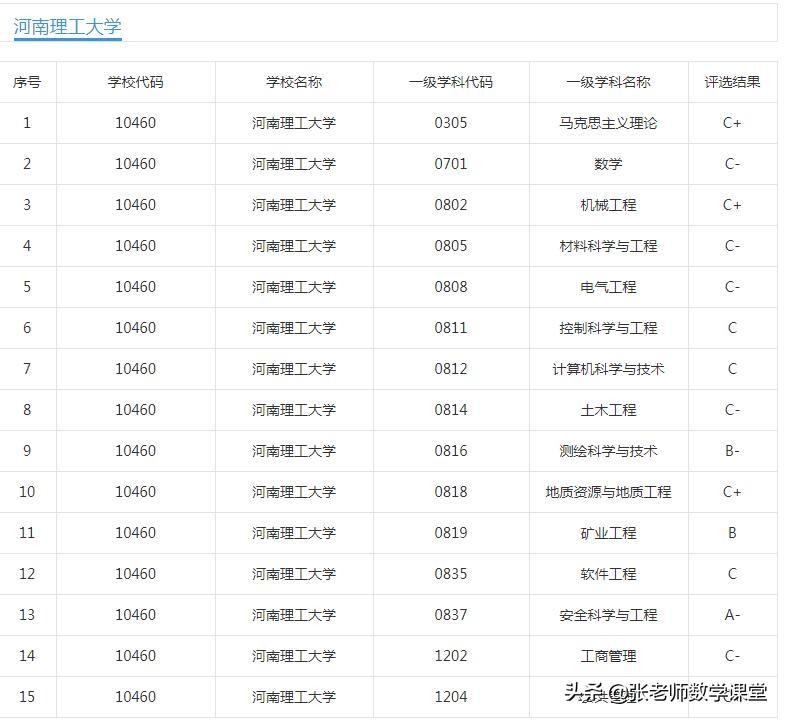 河南理工大学有:A-=1个,B=1个,B-=1个,C+=4个,C=3个,C-=5个