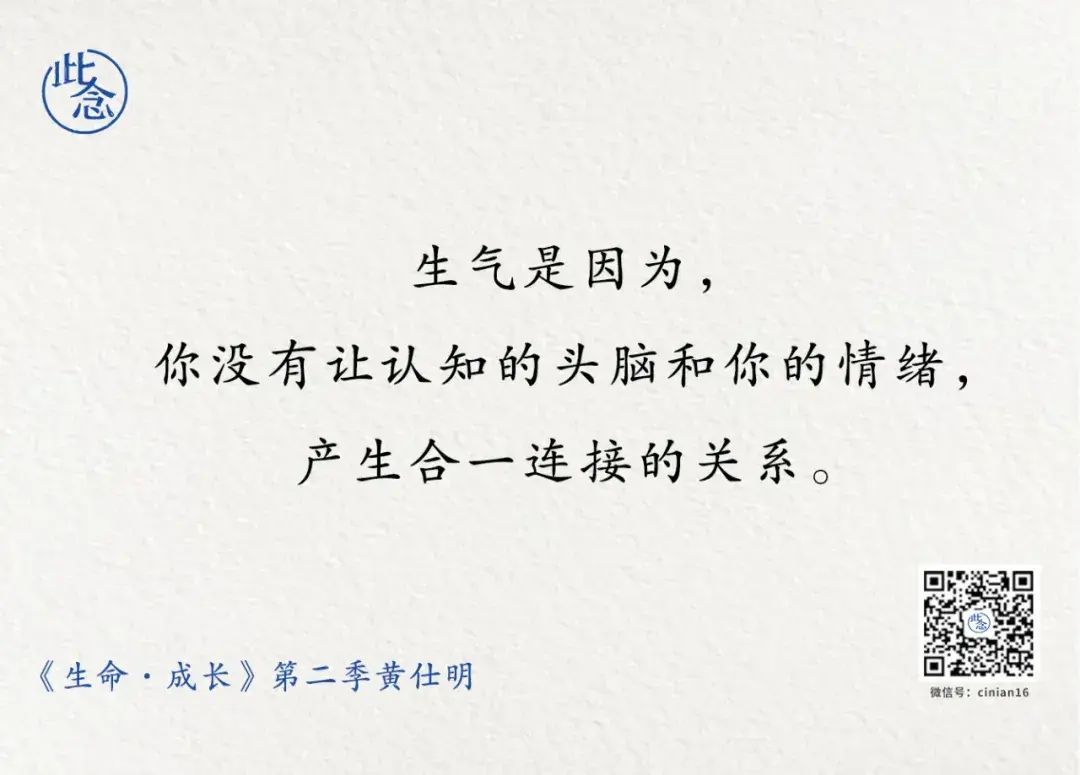 当情绪极大时,或许还是控制不住,这是因为你控制的能力也需要很多的练习。如果你发现生气是不好的,不应该生气,而没有把呼吸带到能量升起的地方,与它产生良好的互动,这实际上是一种压抑。因为,你也没有让认知的头脑和你的情绪,产生合一连接的关系。