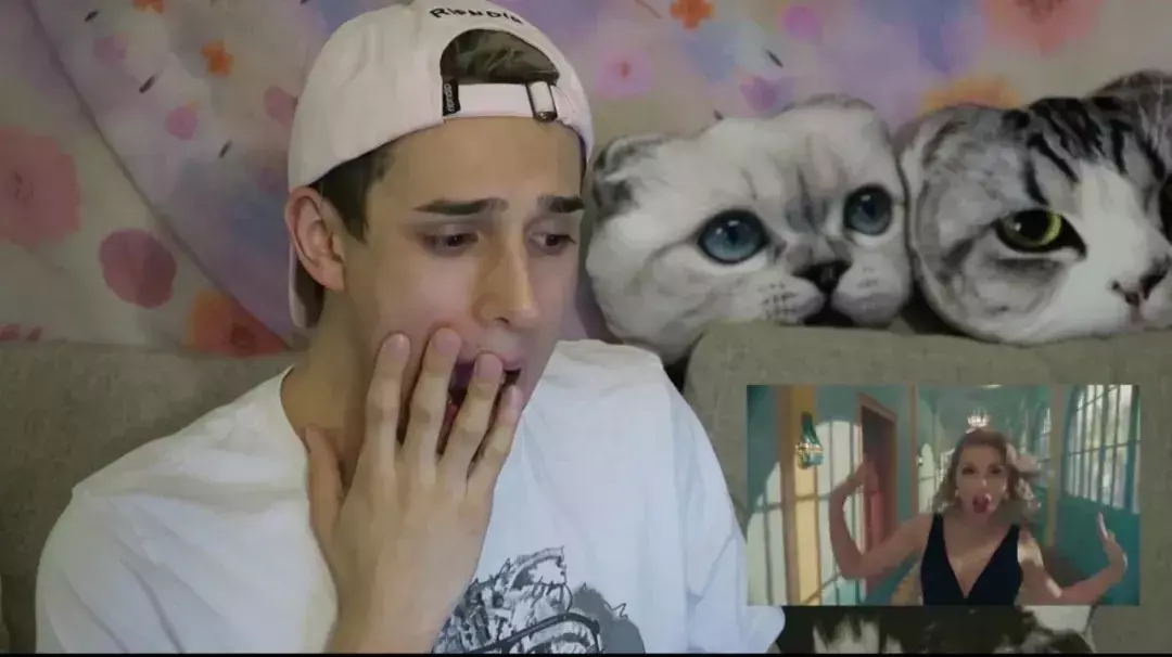 第三种是在某个颇受关注的作品上线时的反应。 比如泰勒·斯威夫特新专MV全球首发、《权利的游戏》第八季上线,博主在观看过程中会有什么样的反应?