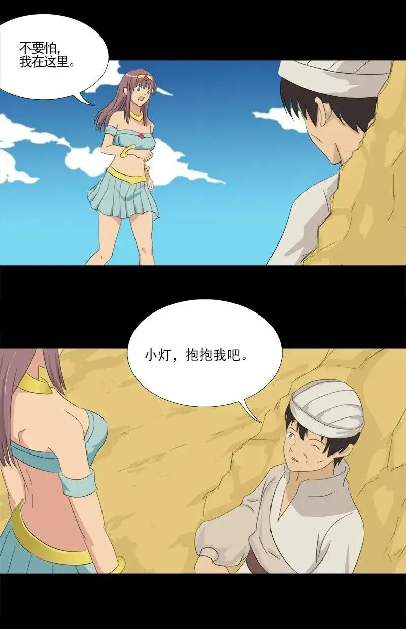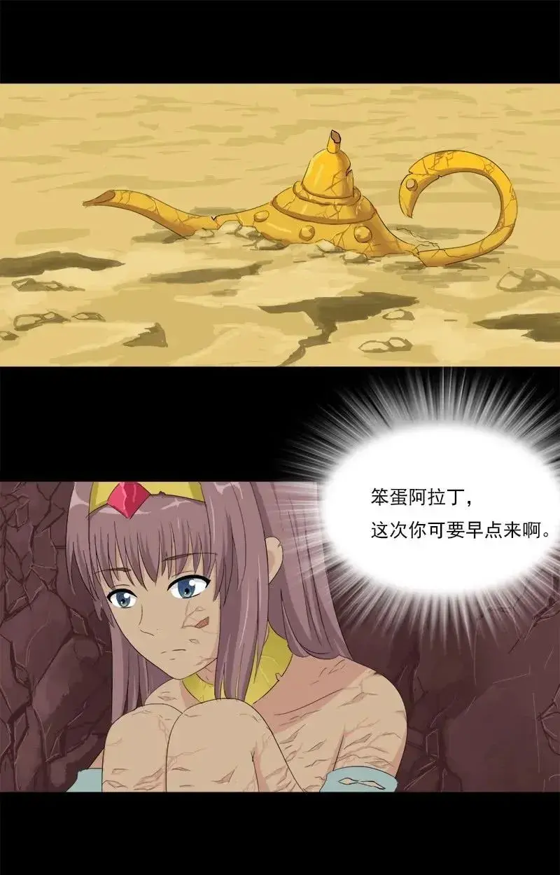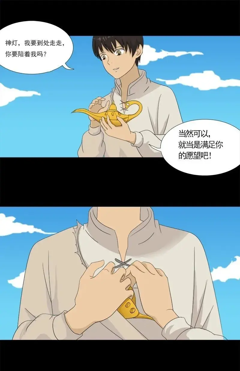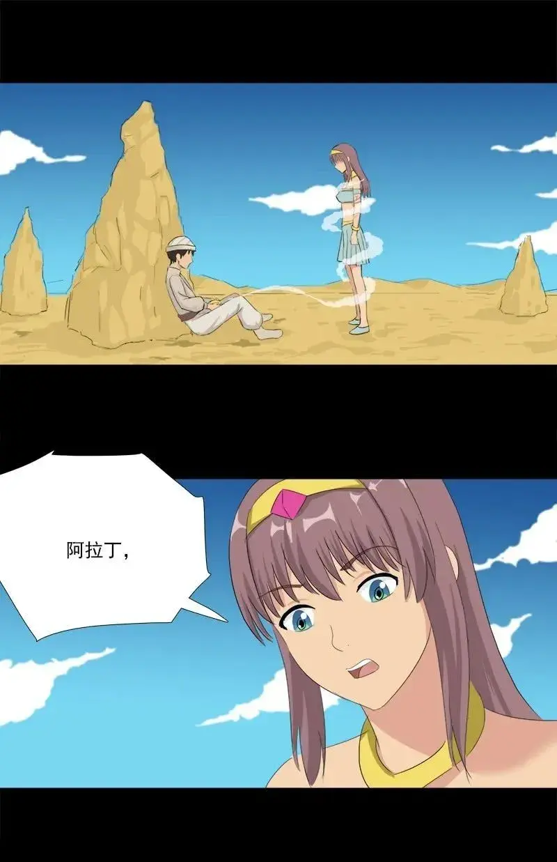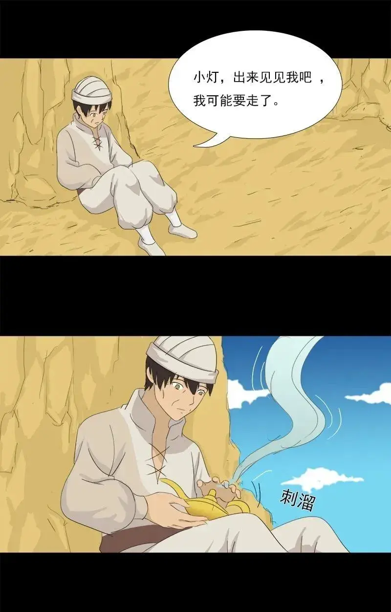 美丽的灯神爱着阿拉丁,用神力一次次让时光倒流(每用一次,灯神自身就会有裂纹】,等着阿拉丁再次回到这里...