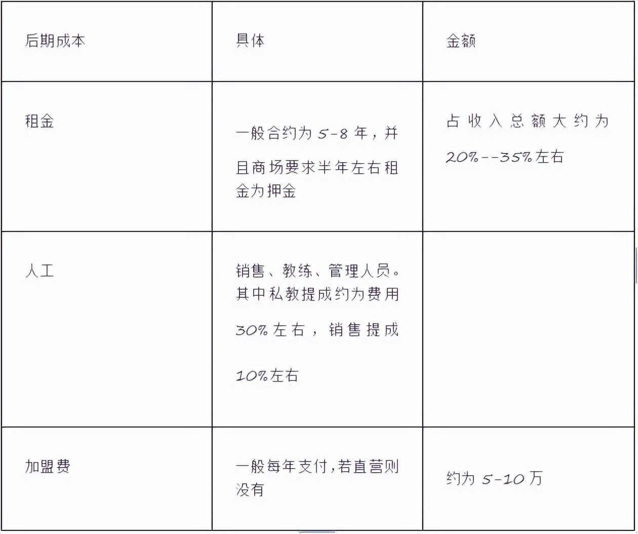 剩余30~40%的毛利得覆盖获客成本、培训成本、装修和器材折旧费用,以及税务等方面事宜。