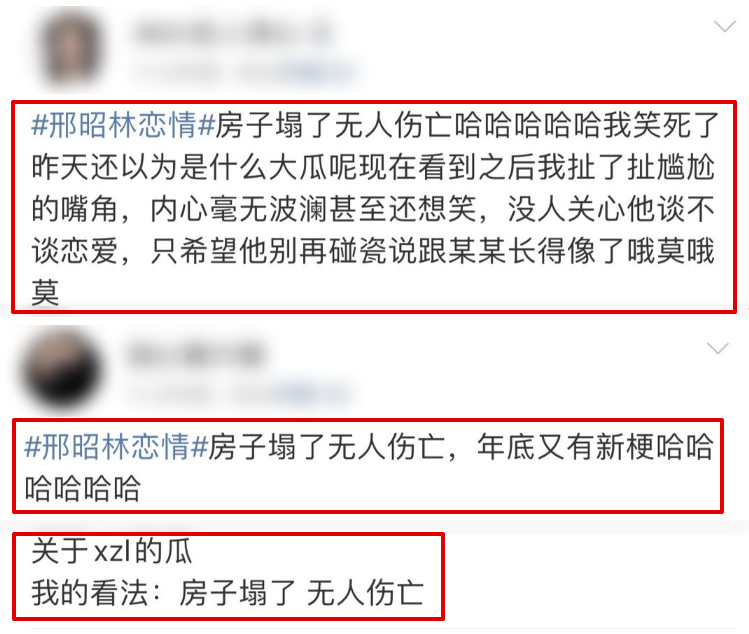 邢昭林恋情曝光不久之后,很快又有一条相关的热搜出现了。前一段时间焉栩嘉的恋情曝光,就引起了不少网友的在线吃瓜,而邢昭林的疑似恋情曝光,却是一种无人问津的感觉。没有粉丝在线控评,也没有粉丝在线澄清,被不少网友调侃“房子塌了,无人伤亡”,这个梗估计能成为2020年底最佳。