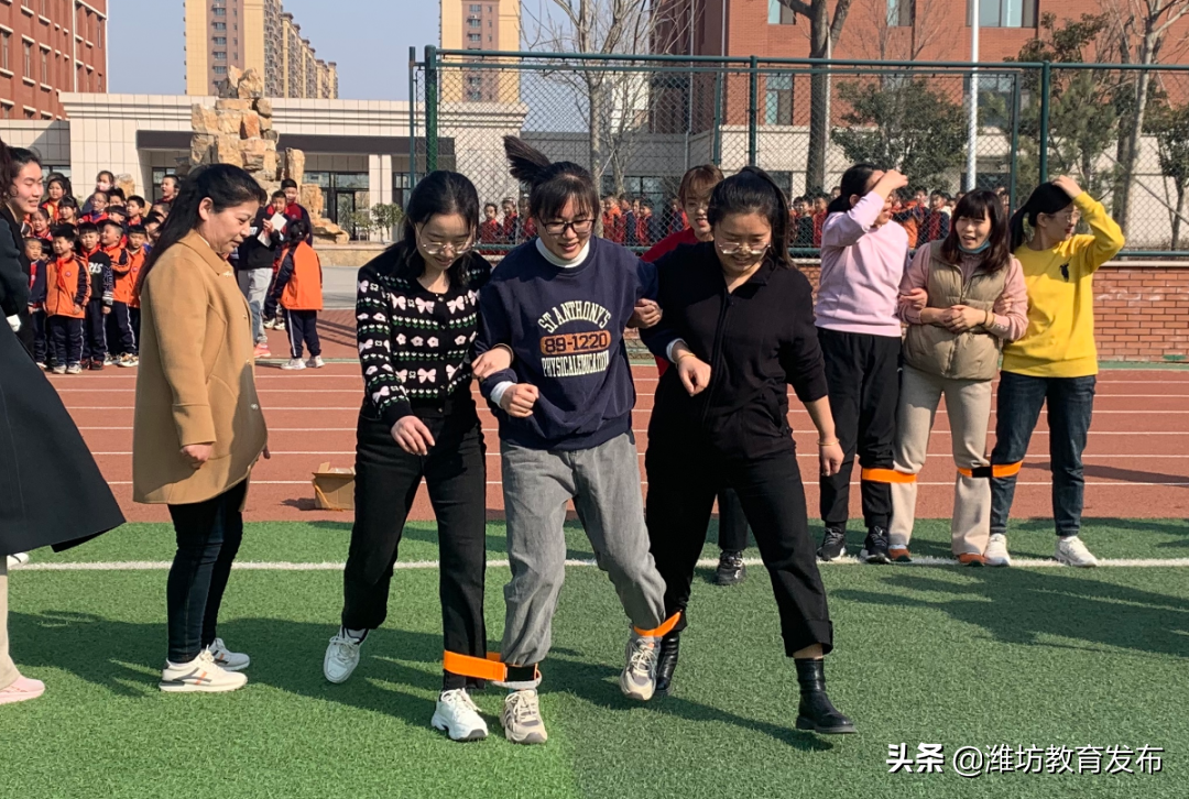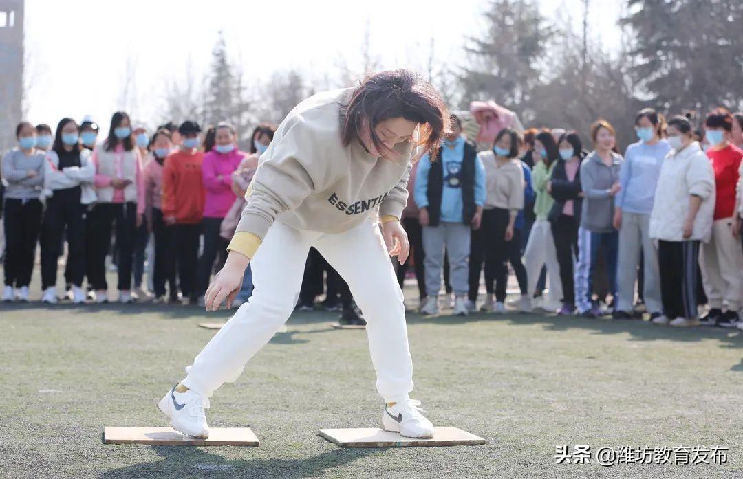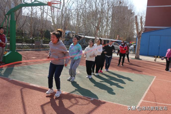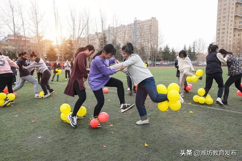 ▲潍城区潍阳学校:举行女教职工趣味运动会,庆祝“三八”国际妇女节。