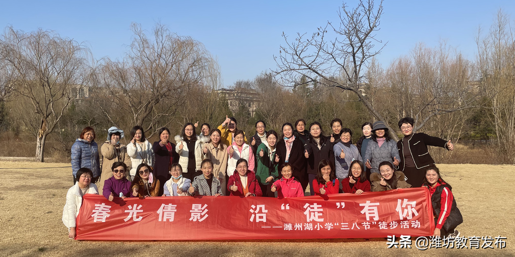 ▲奎文区潍州湖小学:组织女教师开展“春光倩影 沿'徒'有你“徒步活动。