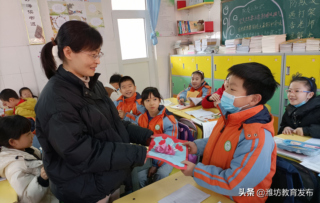 ▲潍城经济开发区实验小学:学子们为教师们献上鲜花,亲手将节日的祝福送到教师手中。