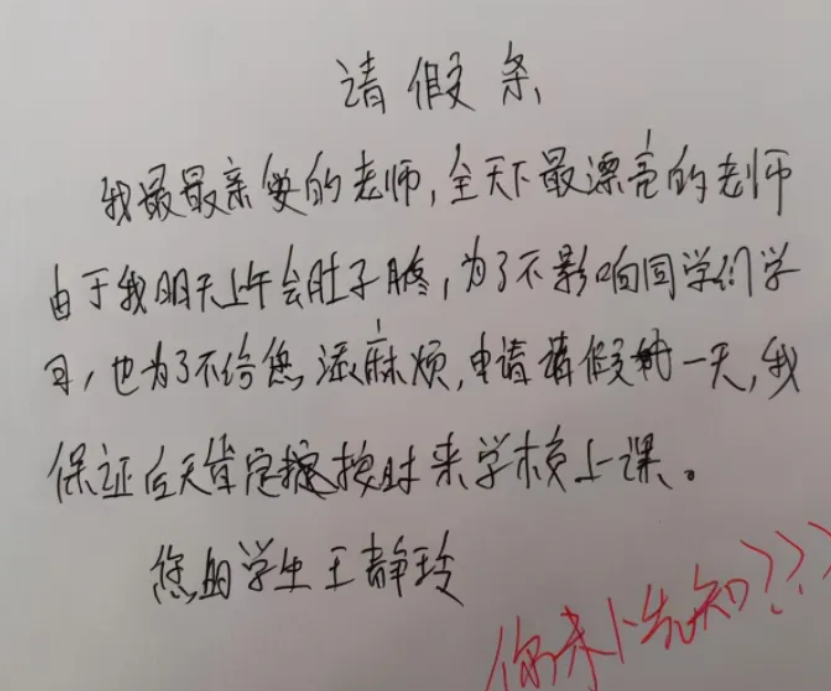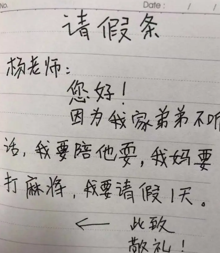 相比之下,高中生会果断的选择后者,毕竟逃课是在犯错误,而请假可以光明正大的走出校园,为了能够得到班主任的批准,高中生在写请假条的时候,可谓是费尽心思,请假理由“相当充分”。