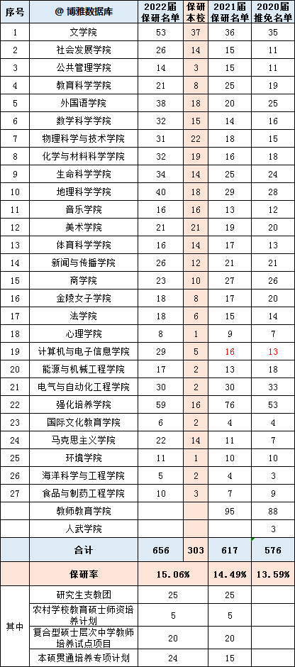 2022年,南师大推荐免试研究生公示名单共计656名同学。较上届增加38人。