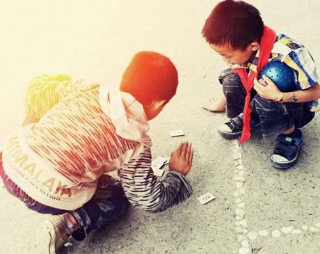 把洋画中间稍微一折,两个人拍,谁把画片拍翻过来,就可以把所有的画片赢走。只是那时候,我们总怕对方赢,中间便是不折,全平的洋画,拍的狠了也只觉得手心红了却不疼,不过尘土也拍的飞扬。想想当时自己确实傻得可爱!