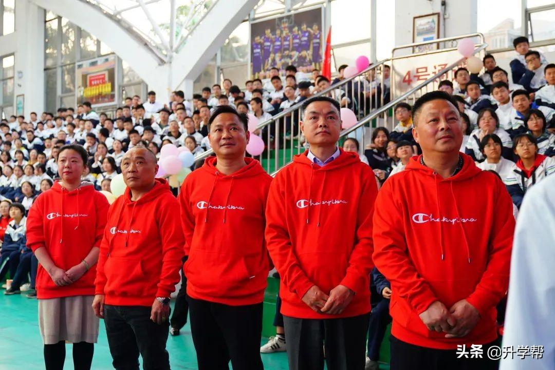 陈光明校长,杨兵校长,邱刚校长,初三年级郑鸿元主任,高三年级何关远主任,初三、高三年级家委会代表上台开启誓师大会。