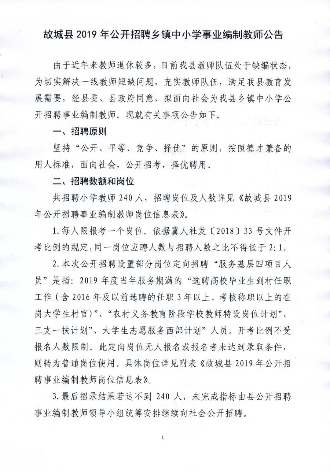 根据邢台市委组织部、邢台市人力资源和社会保障局《邢台市事业单位公开招聘工作人员实施办法》(邢人社[2014]6号)文件精神,结合我县2019年教师招聘计划及教育教学实际需求,拟面向社会公开招聘教师100名。现将有关事项公告如下: