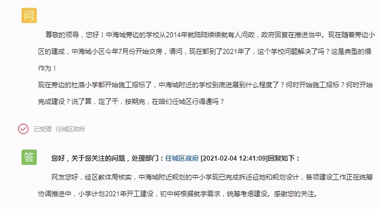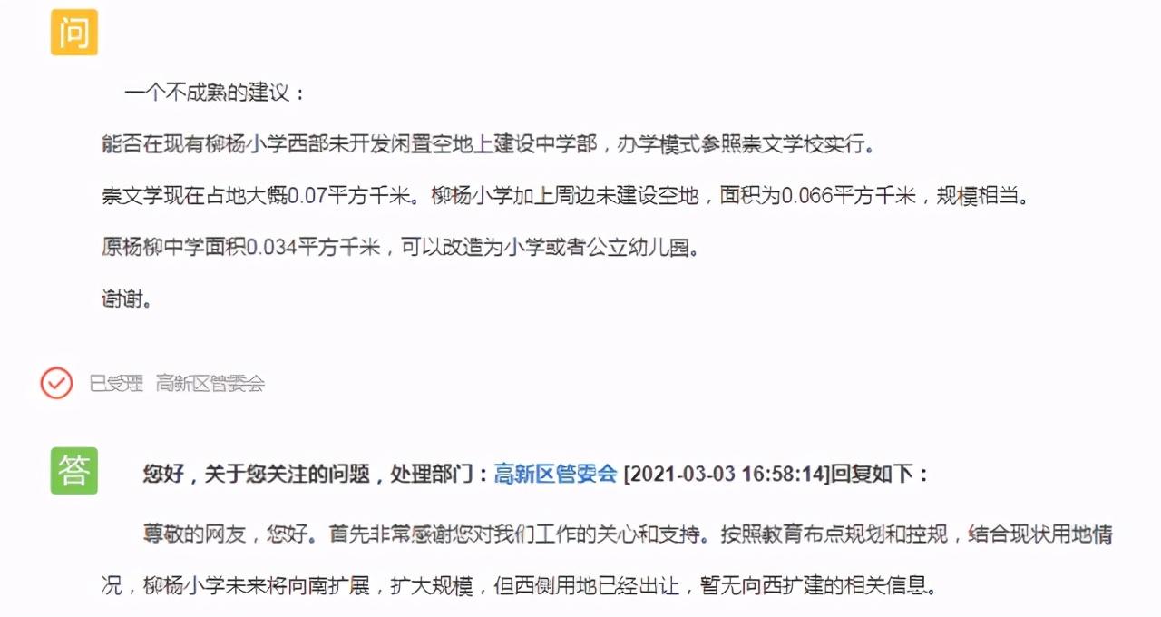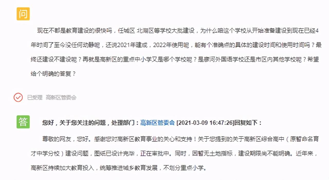 01官方回复学校的规划建设问题