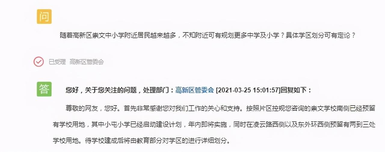 高新区崇文中小学附近可有规划更多中学及小学?