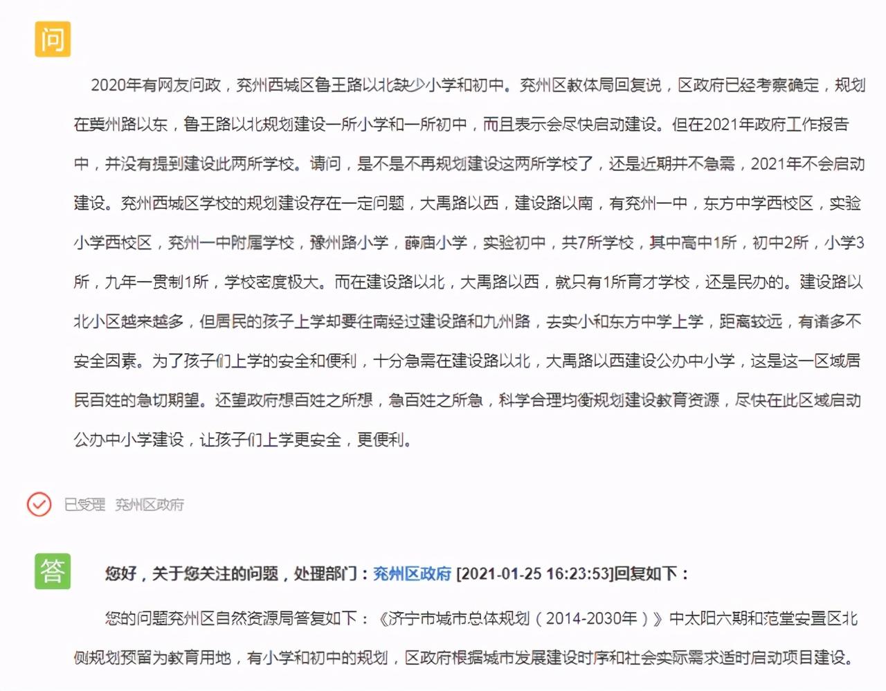 教育问题一直是大家所关注的,近日,济宁市教育局回复了一批关于学校的规划建设问题,涉及几所关注度较高的学校建设,进展情况.......