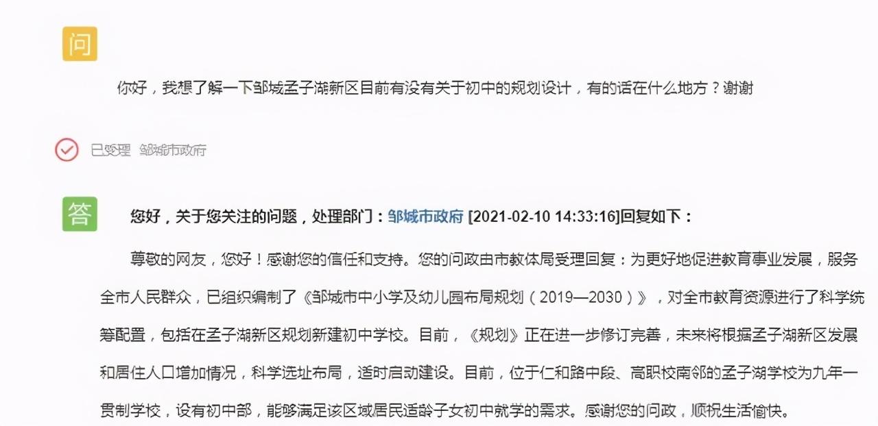 邹城孟子湖新区目前有没有初中的规划设计