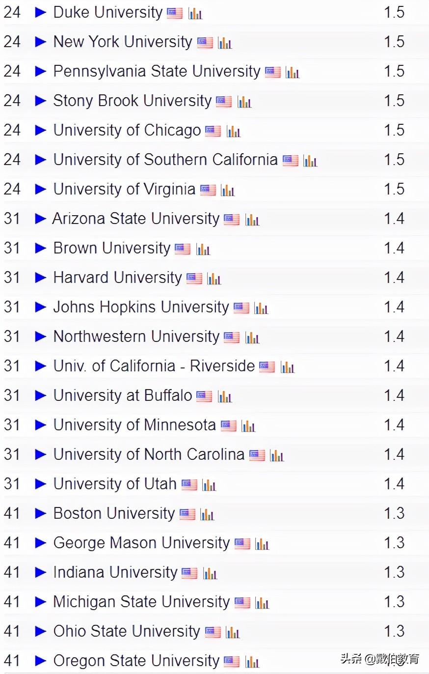 这份榜单中最让人惊喜的是加州大学圣地亚哥分校 (#3),而且加州大学排名全面开花。除了UCSD,进入前20的加州大学还有UCB (#8), UCLA (#13), UCSB (#13), UCI (#20)。