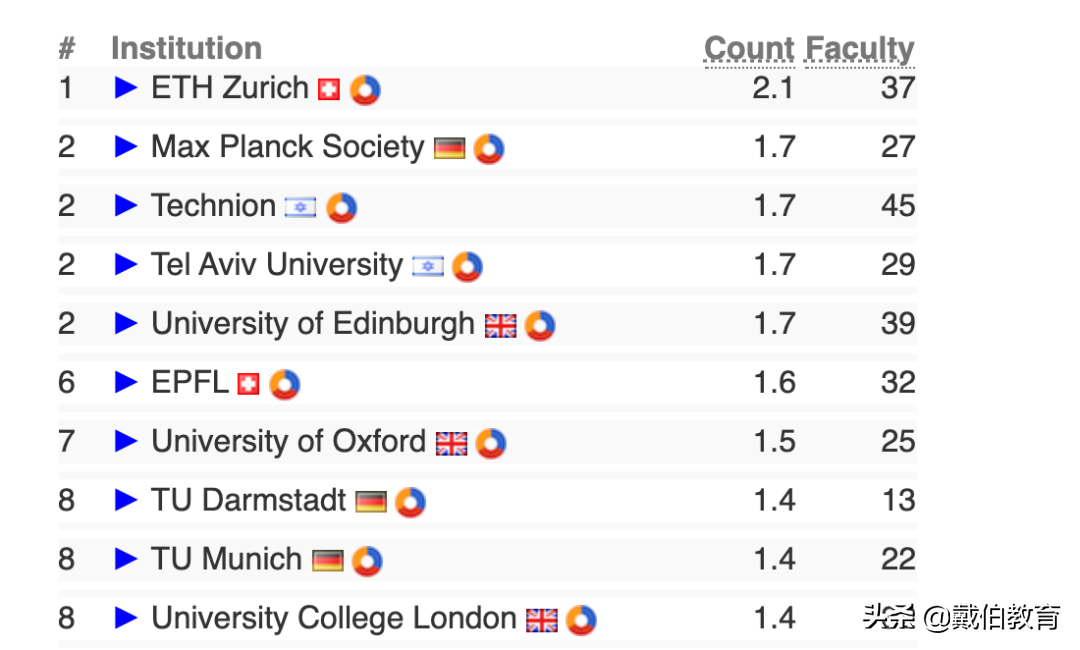 欧洲计算机排名榜首的是苏黎世理工,这是爱因斯坦的母校,学术能力毋庸置疑。