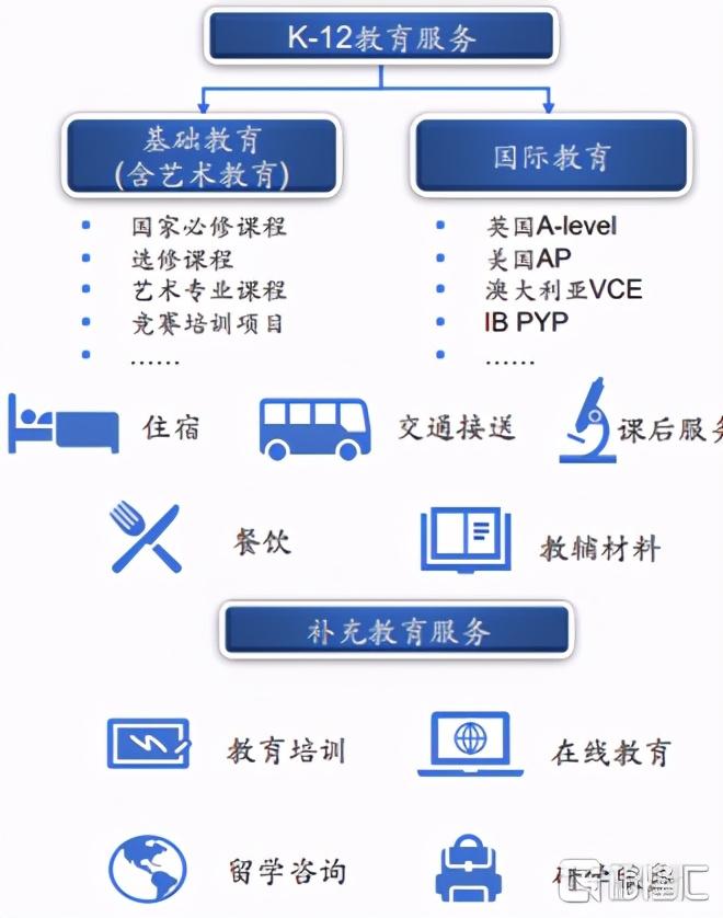 值得注意的是,集团的K-12教育业务板块除了提供小学、初中、高中学段的基础教育项目,还提供同阶段的国际教育项目。