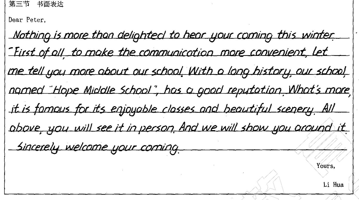 版权声明:我们致力于保护作者版权,注重分享,被刊用文章【介绍高中学校英语作文(高二英语作文赏析)】因无法核实真实出处,未能及时与作者取得联系,或有版权异议的,请联系管理员,我们会立即处理! 部分文章是来自自研大数据AI进行生成,内容摘自(百度百科,百度知道,头条百科,中国民法典,刑法,牛津词典,新华词典,汉语词典,国家院校,科普平台)等数据,内容仅供学习参考,不准确地方联系删除处理!;