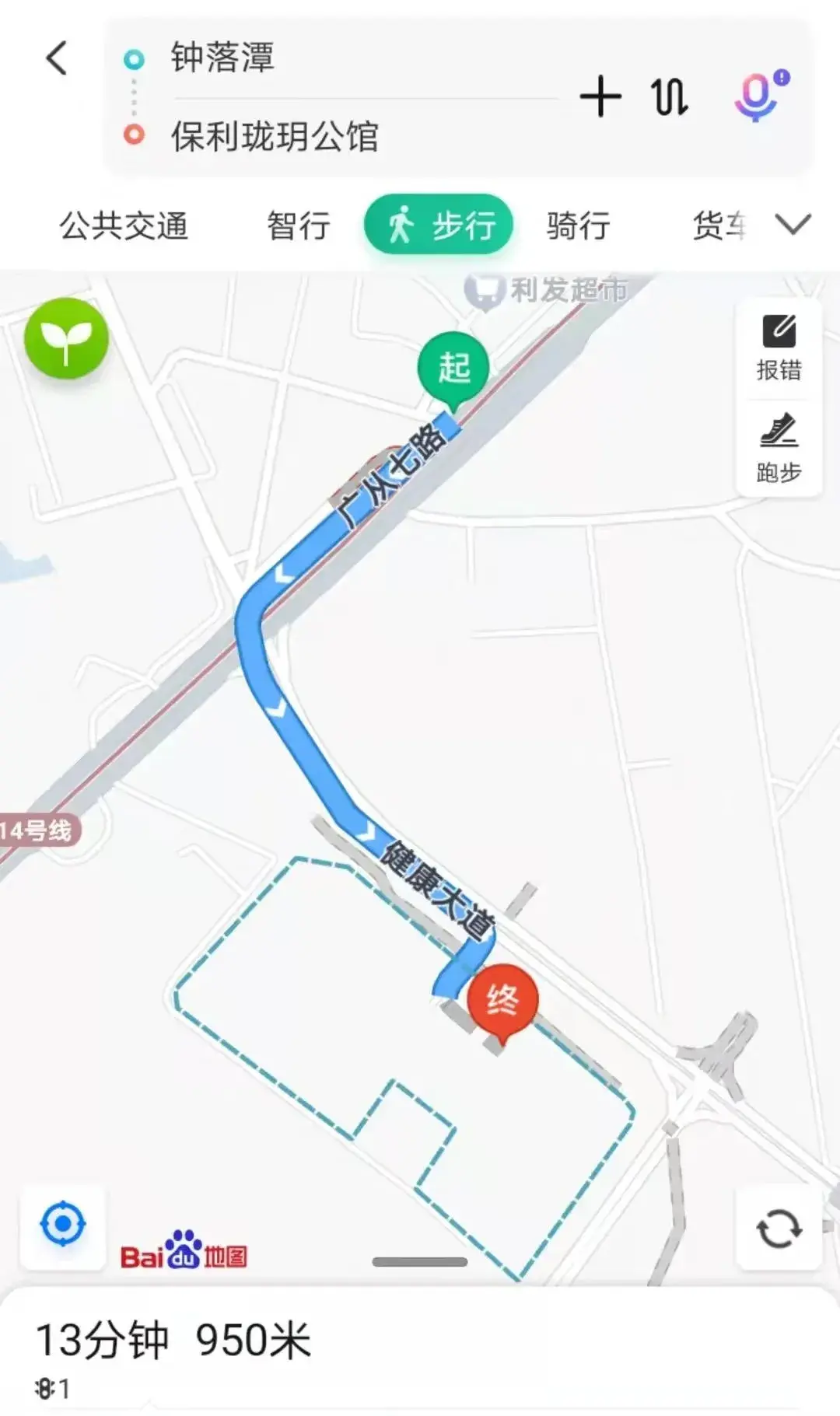 需要注意的是,根据百度地图步行方案,除了保利珑玥公馆到地铁站的距离约950米之外,其他的项目与地铁站距离均在1公里以上。