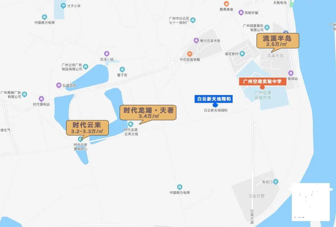 目前,人和镇在售的三个一手新房,分别是时代云来、时代龙湖·天著和流溪半岛,房价在2.5-3.4万/㎡。
