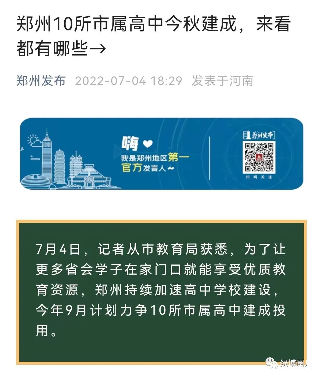 2022年7月4日,记者从市教育局获悉,为了让更多省会学子在家门口就能享受优质教育资源,郑州持续加速高中学校建设,今年9月计划力争10所市属高中建成投用。