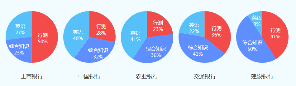 笔试科目(各科目占比):数量关系、言语理解、资料分析、逻辑推理、判断推理、商业银行基础知识