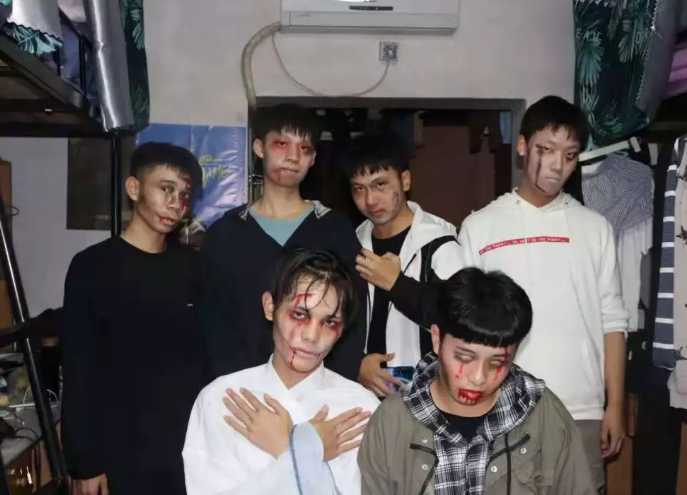 看着六名同学的妆容,虽然看上去有点吓人,但确实画得也像是那么回事,不得不说还真有点符合万圣节的气氛,莫不是万圣节的气氛组吧。