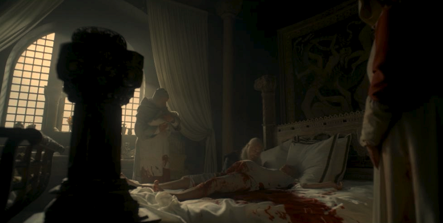 这一边,是此刻血肉模糊的决斗,那一边,是女王艾丽在产房里难产。