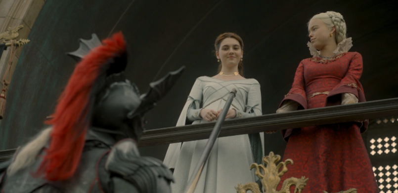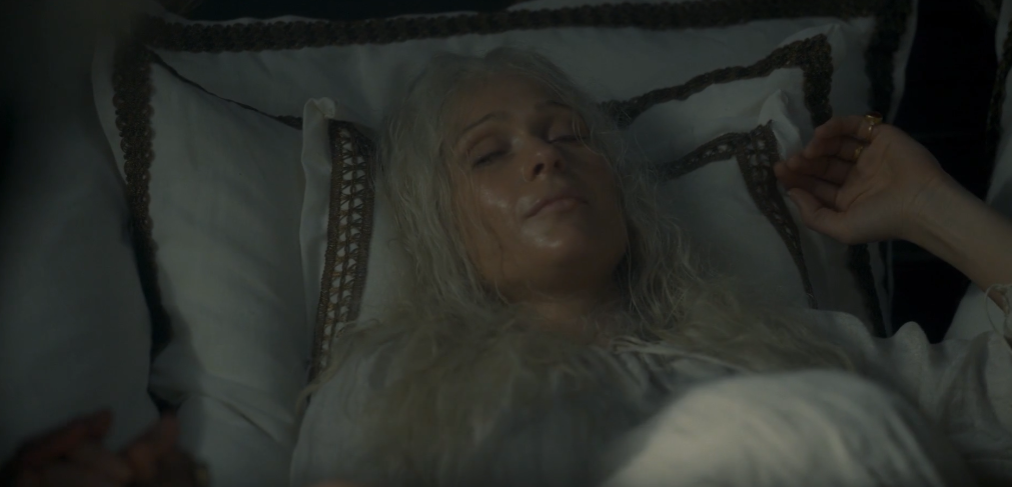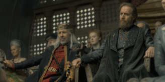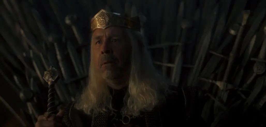 老国王当时并无亲生儿子在世,只能将王位传给侄子,韦赛里斯·坦格利安(帕迪·康斯戴恩 饰)。