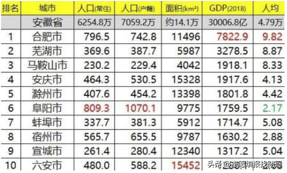 上图为2018年安徽省各城市的GDP数据,从这个数据来看,第二名加上第三名,GDP总量也赶不上合肥市。