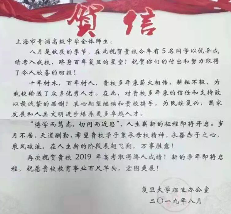 2019年高考,复旦交大纷纷发来喜报:复旦录取5人,交大录取6人,一共11人;综合评价录取17人进入10所985+211学校。