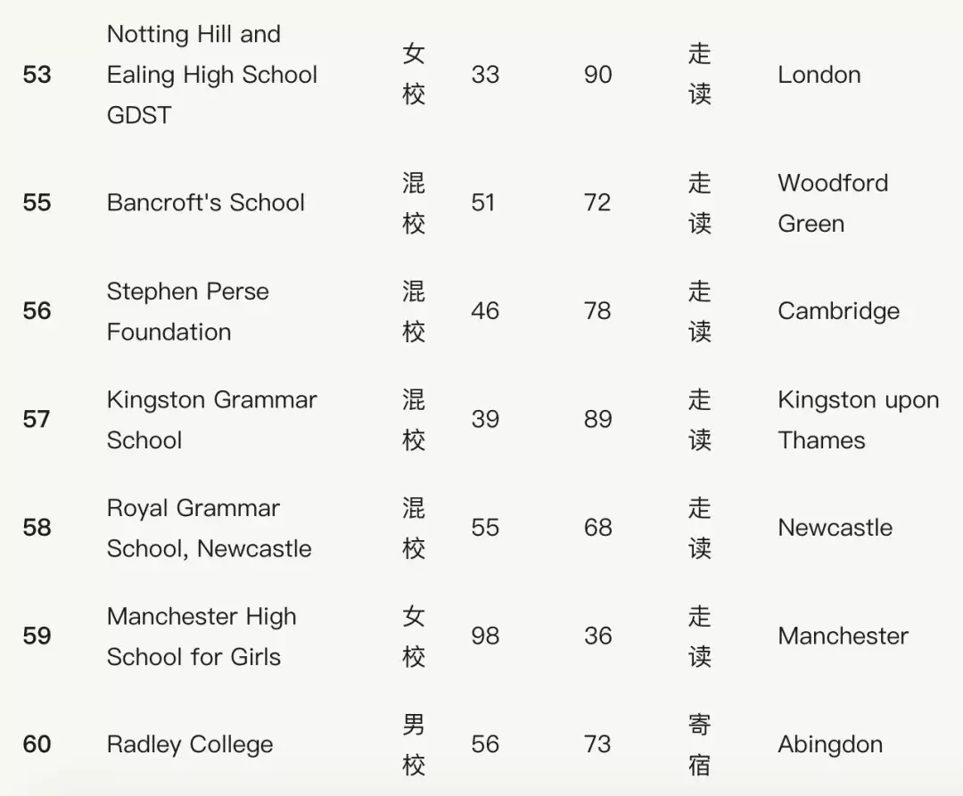 所以,这份只根据每所学校在2019年英国中考(GCSE)和高考(A-Level)中取得的成绩进行排名的榜单,是英国本土学校最为认可,也是英国本土家长最常参考的一个排名。