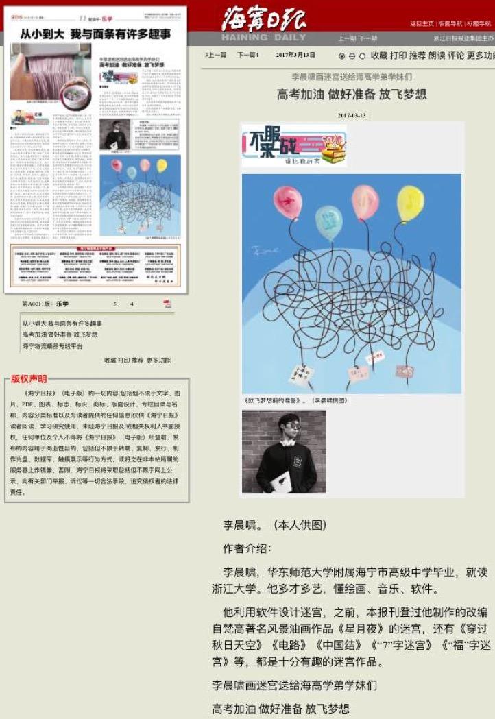 这些迷宫被海宁日报的记者偶然发现,因此他的迷宫成为了海宁日报“不服来战”版块的常客,极具趣味性。