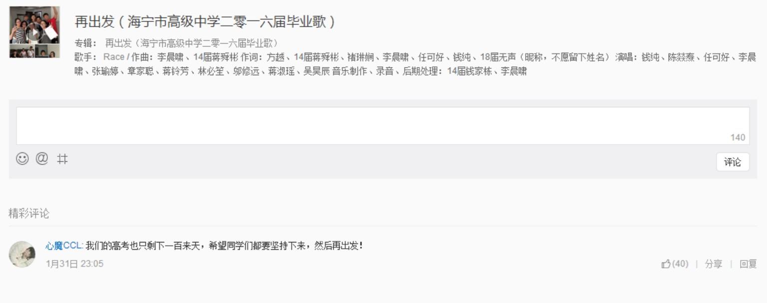 现在他是网易云音乐的独立音乐人Race,发表了40多首自己的作品,在最近的军训中,他为自己的连队制作了合唱校歌的伴奏,也同样发表在网易云中。