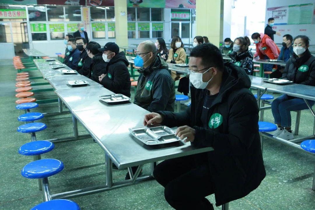 班主任与餐厅值班老师引导学生两列纵队进入餐厅,严格遵守“七步洗手法”的正确洗手步骤洗手杀菌。到达取餐区后,保持1米以上距离列队等候,取餐后到指定就餐区域就餐,确保单人单桌同向就餐。就餐完毕,戴上口罩,整理餐具放回指定位置,按照指定路线离开餐厅。