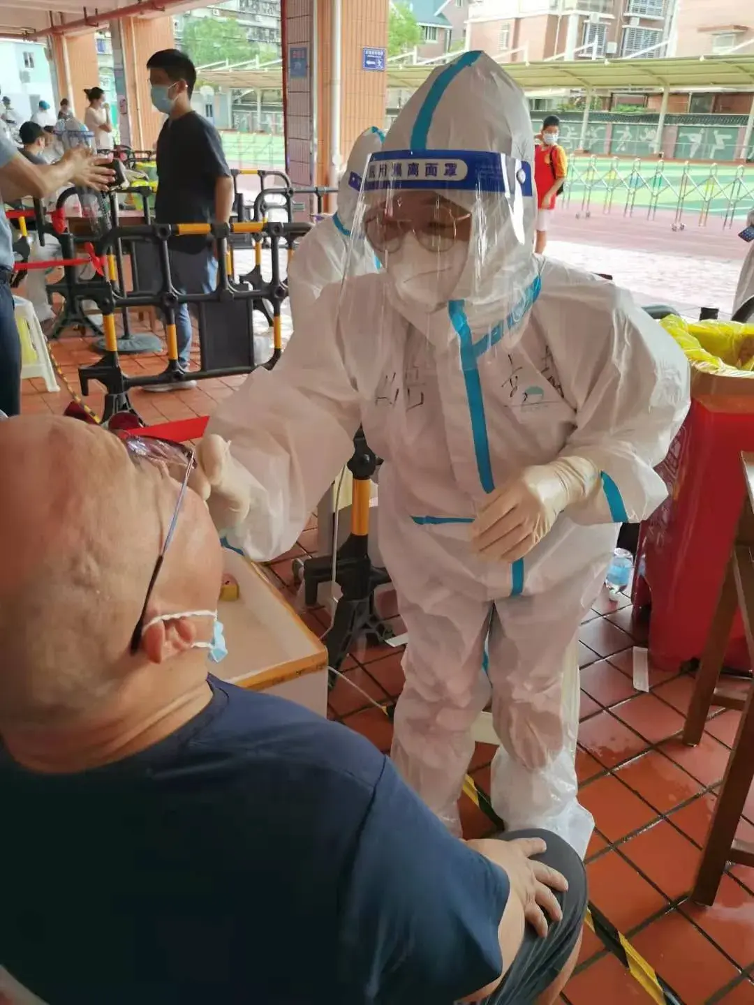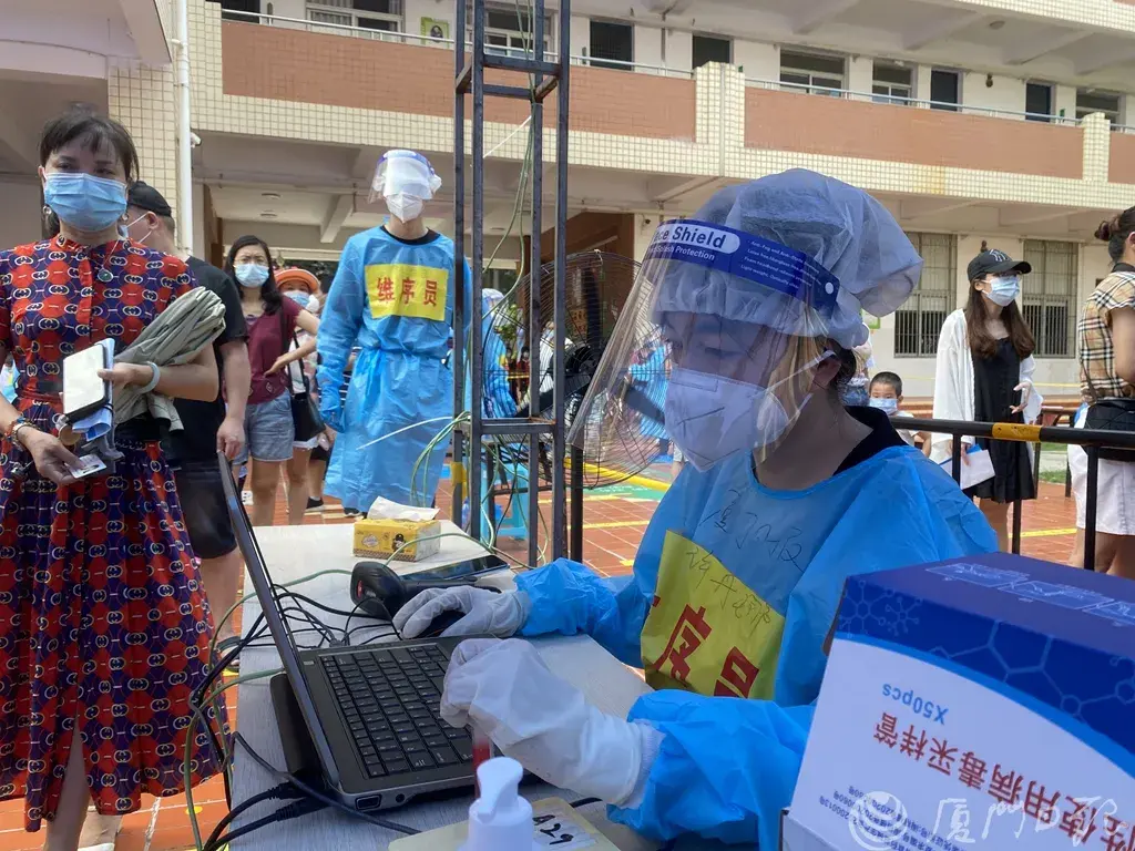 “年轻人都去上班了,我们闲着没事当然要来帮忙了。”57岁的李阿婆笑道。在后埔社区禾山中学检测点,除了社区工作人员之外,志愿者中有不少都是五十岁以上的老年人。“我们都是土生土长的本地人,我们也想为守护家园出一份力。”