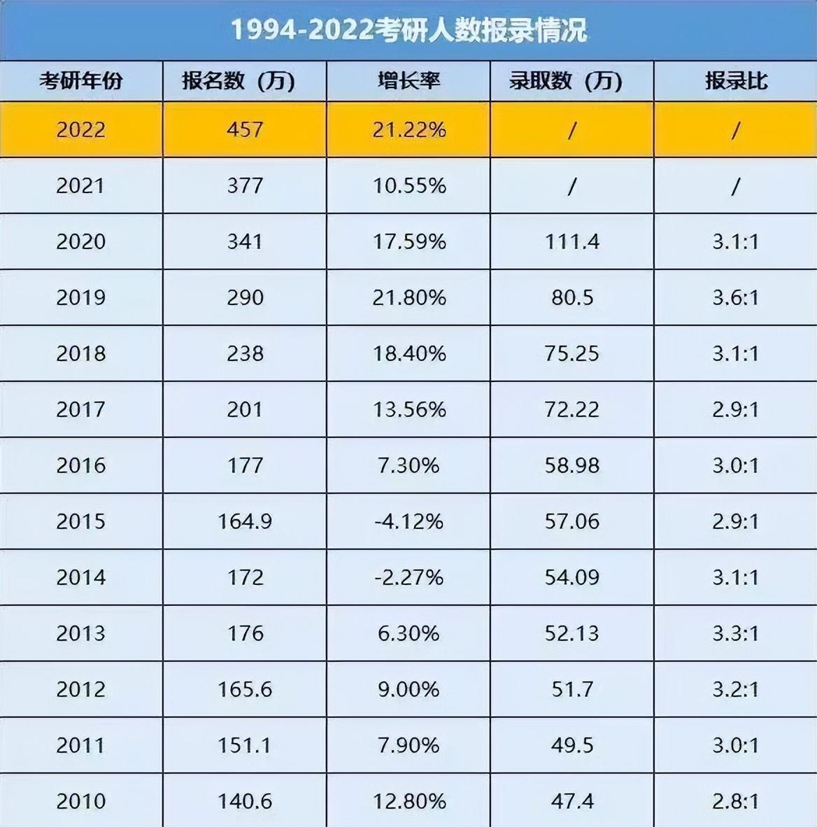 随着教育水平的提升,本科学生逐渐增多,2022年全国高考人数为1200万人,多数学生都有进入本科院校的机会,本科学历逐渐稀释,研究生学历也不遑多让,去年研究生报考人数为457万,上岸110万人,今年报考人数或许还会增加。