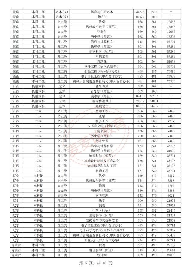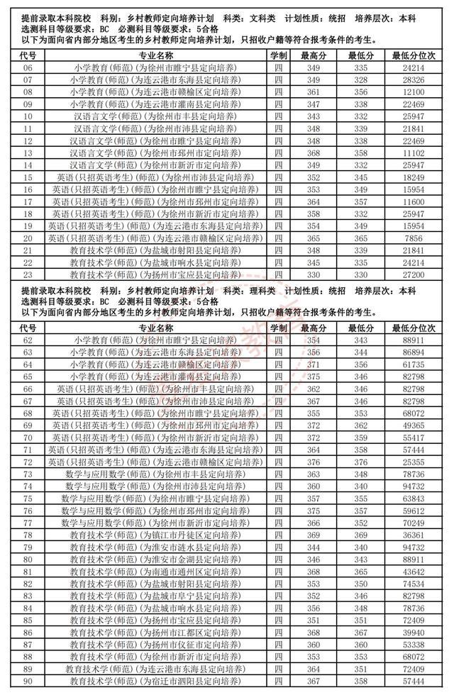 包含艺体本科批,提前本科批,本科一批,乡村教师定向培养,中外合办类。请各位江苏考生重点注意下各批次各专业的最低位次情况(最后一列),分数今年参考价值不大了。