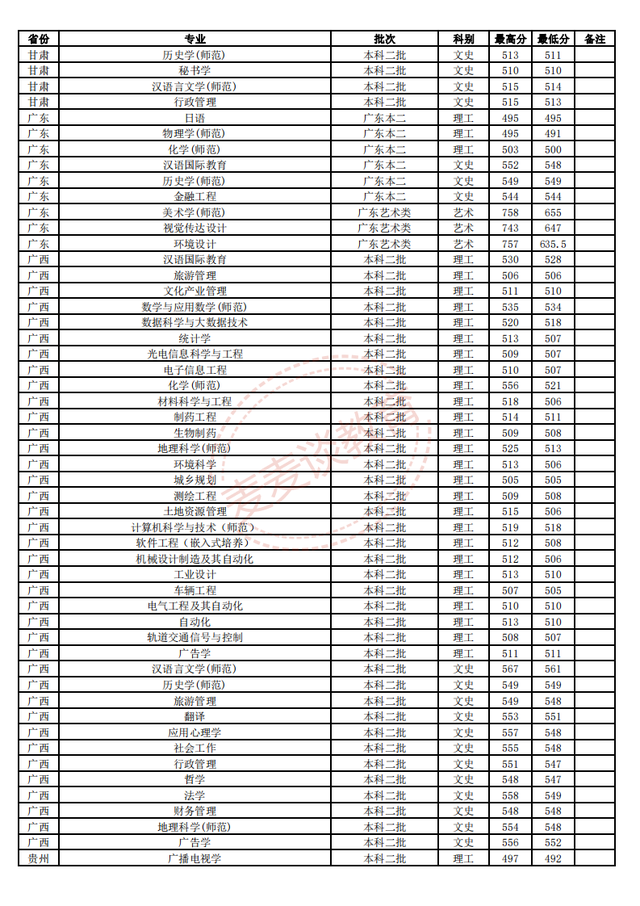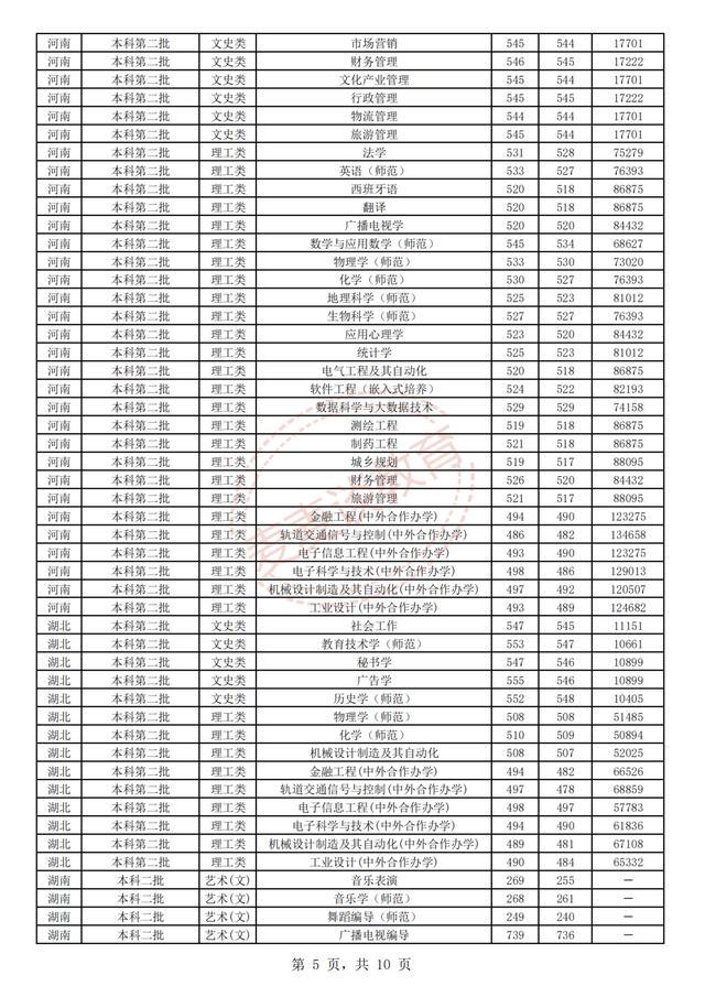 包含艺体类本科,普通本科,预科类,二本批次等批次。注意最后一列各专业的最低位次情况。