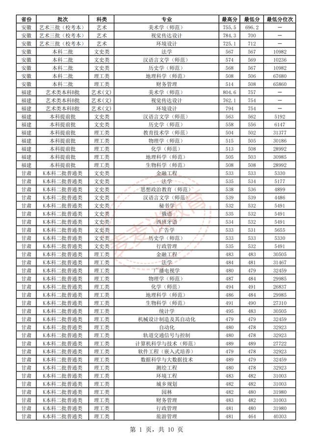 2,江苏师范大学2019在外省各批各专业录取分数+位次