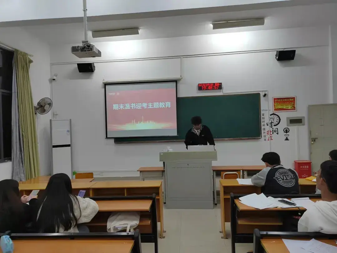 时间如同白驹过隙,转眼又到了学期尾声,随着期末考试的来临,为了呼吁广大学子认真备考,拒绝作弊的不良行为。2021年12月13日晚,人工智能学院2021级大数据2班在辅导员林蓉蓉老师的指导下,由班长薄天宇组织班级全体成员开展以“温书迎考,诚信考试”为主题的班会。