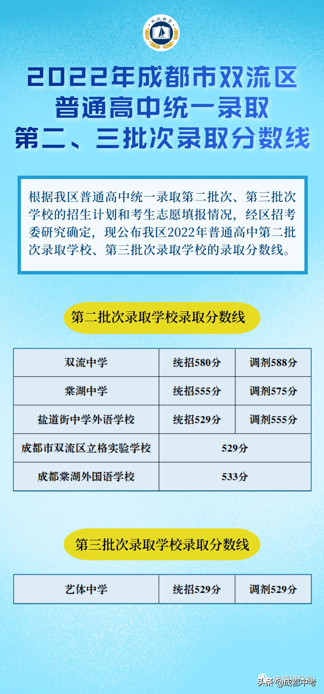 大邑县教育局官方微信发布:2022年大邑高中阶段教育学校统一招生考试公办普通高中录取分数线公布如下: