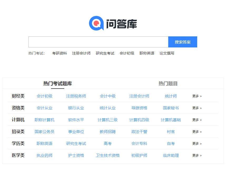 问答库这个网站,就特别适合学生使用,各种常见的题目,都可以在这里找到,部分职场证书的题目也有,虽然数量不多,但是质量都非常高,相信总能帮到你的!