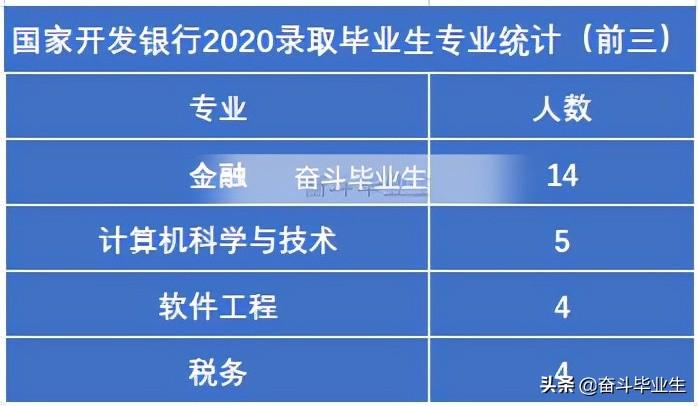 对于银行来说,想都不用想的热门专业肯定就是与金融 ,经济相关的专业,当然在国开行来说就是这种情况,招录人数最多的专业就是金融专业,这个专业一直是很火的,每年都有很多人选择,排名第二的专业就是计算机科学与技术专业,这个不用说吧,反正就是很火的专业,而且这个专业的职位未来可进可退,第一有能力可以去大厂拿高薪,虽然不是很稳,第二可以选择国企,银行这种稍微较稳的,虽然薪资不然大厂高,第三考公务员也是可以的。这里说偏了,那么排名第三的就是软件工程和税务专业,软件工程跟计算机类专业差不多,都写代码的,税务专业还用说吗,当然就是从事收税类的工作的,这个是几乎永远会有的专业,当然如果人工智能可以发展到代替,当我没说。