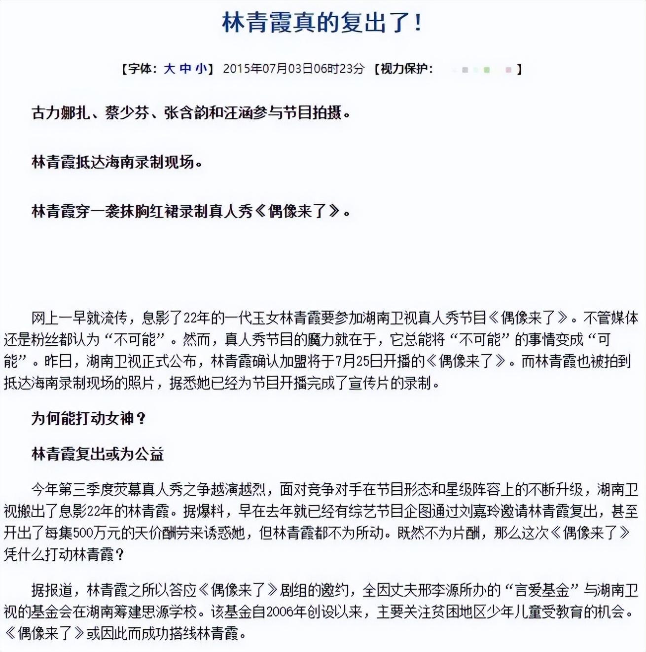于是没过多久,林青霞就现身《偶像来了》,给芒果挣足了收视率。