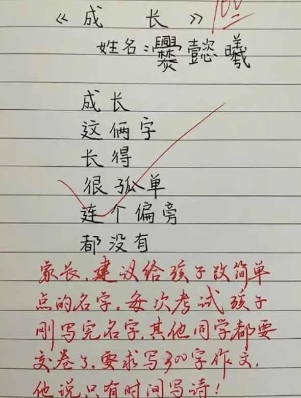也有的老师比较负责,因学生名字取得太不寻常和家长进行沟通,然而,中二被抓包的家长却拒不承认,并给出一个合情合理的理由:爸姓万,妈姓涂,所以学生叫“万涂思瑞”。