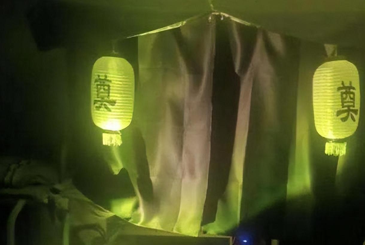 还有的大学生生怕光布置床帘不够,为了烘托气氛还搞了两个大灯笼,晚上宿舍灯一关,两盏灯笼散发着幽幽的绿光,胆小的学生怕是都不敢来串门,咱就是说宿舍装修风格不接地气但也不能接地府呀,住在这里真的睡的着吗?