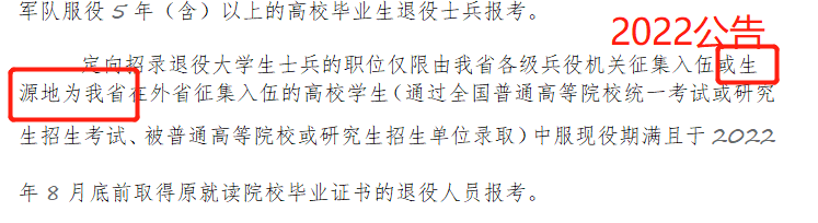 对比2021年公告,可以发现,2022年在定向招录退役大学生士兵的职位多增加了一类生源地为我省但是在外省征集入伍的高校学生,所以对于这类大学生退役士兵无疑是一个利好消息,可以格外注意一下这类岗位。