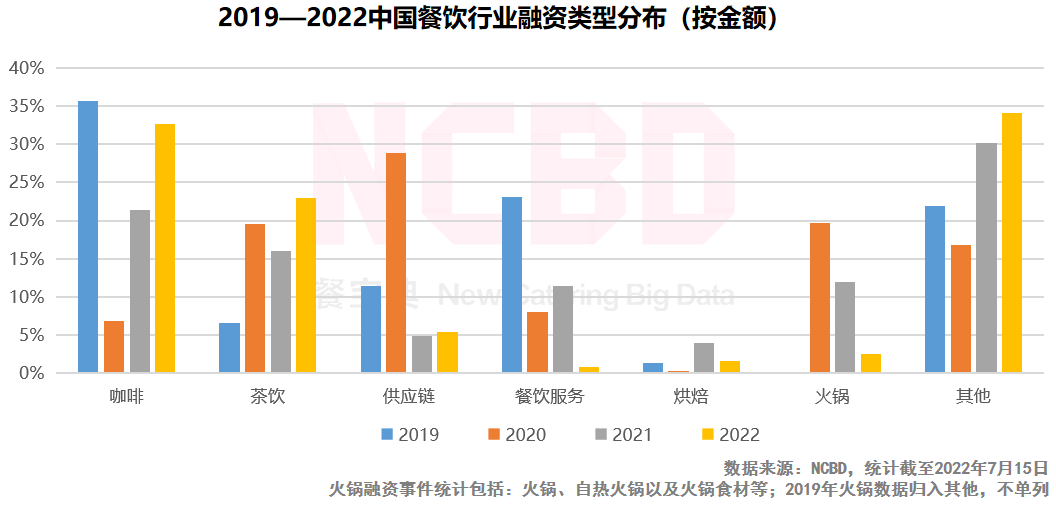 如果把时间线拉长一点,我们也不难发现,茶饮行业受资本青睐不是今年才有的事,而是已经延续几年了。NCBD(餐宝典)的上述全景报告显示,从2019年至今,无论是融资数量还是融资金额,茶饮都是整个餐饮行业最吸金的几个品类之一。