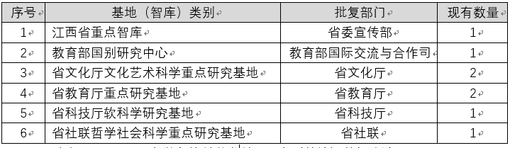 (1)江西理工大学人文社会科学重点研究基地(智库)数据统计